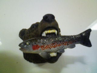 やはりヒグマがサケをくわえている置物でしょう。